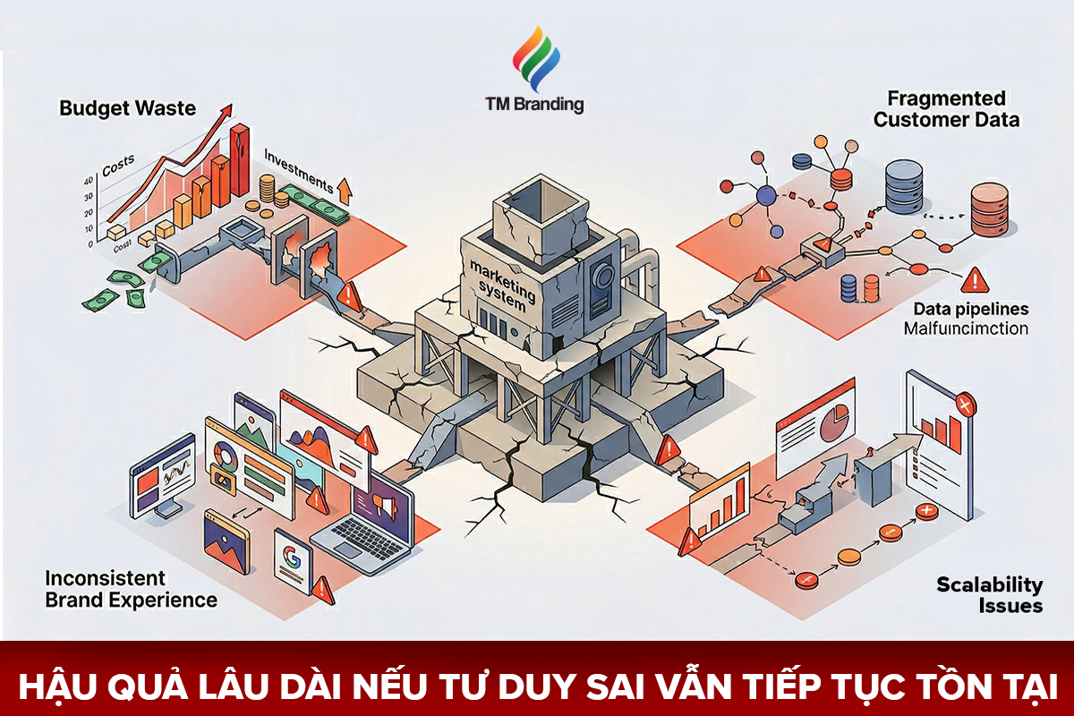 Cuối cùng là khó mở rộng hệ thống marketing trong tương lai. Khi nền tảng vận hành ban đầu không được thiết kế đúng, việc nâng cấp sang các mô hình marketing trưởng thành hơn sẽ gặp nhiều trở ngại.